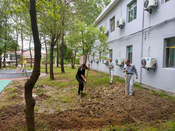 ――記南城分公司生活區建設 春尾夏初,南方的雨水總是格外的充盈,將漫山遍野都浸綠。借著雷雨過后難得的休憩,呼吸著清爽的空氣,迎著充滿青草香味的晨風,兗州中材南城分公司全體員工開始了新一輪的生活區綠化建設。 南城分公司于2020年3月整體搬遷至新生活區,搬家之前,大家就經過多次熱烈的討論,滿懷憧憬計劃新家的樣子,哪里要種樹,哪里要養花,經常在歡聲笑談中就已敲定。搬遷后分公司積極參照項目形象建設標準,結合群議方案進行生活區建設,向花園式園區、田園式生活大步前進。 今天的任務十分“艱巨”,要將生活區后院改造成菜園。大家熱情高漲,自發地分成多個小組墾荒,前面拿鐵鍬的剛翻完地,后面緊接用鋤頭鎬出田壟,現場一派熱火朝天的景象,忙而不亂,秩序井然。  盡管大家干的汗流浹背,但歡聲笑語不減,都感到很充實。種植經驗足的老員工向青年人講解種田知識,將中國人走到哪種到哪的精神展現的淋漓盡致,又演變出另一種文化傳承。不知不覺中,田園農莊的雛形就已具備。