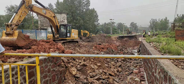 自7月17日以來(lái),河南遭受極端強(qiáng)降雨天氣,分公司駐地登封市白坪鄉(xiāng)遭遇歷史有記錄以來(lái)降水峰值。白坪鄉(xiāng)前期存在大量煤礦,地下存在采空區(qū),連續(xù)強(qiáng)降雨天氣造成白坪小區(qū)北側(cè)道路塌陷,目測(cè)塌陷方量1600m3,造成河道改道,洪水沿塌陷區(qū)倒灌入地下。7月21日上午10時(shí)許白坪分公司接到白坪鄉(xiāng)政府險(xiǎn)情通知,立即組織人員及設(shè)備趕赴現(xiàn)場(chǎng)進(jìn)行搶險(xiǎn)救援工作,調(diào)派挖機(jī)兩臺(tái)、汽車(chē)兩輛,其中一臺(tái)挖機(jī)去塌陷區(qū)進(jìn)行險(xiǎn)情處理,另一輛挖機(jī)配合汽車(chē)在礦山裝料運(yùn)輸至塌陷區(qū)。目前位于塌陷區(qū)處理險(xiǎn)情的挖掘機(jī)24小時(shí)不間斷作業(yè),力爭(zhēng)以最快速度排除險(xiǎn)情,不計(jì)代價(jià)配合當(dāng)?shù)卣龊梅姥淳葹?zāi)工作,做到央企在關(guān)鍵時(shí)刻的責(zé)任擔(dān)當(dāng)。  塌陷區(qū)  挖掘機(jī)到現(xiàn)場(chǎng)進(jìn)行初步作業(yè)  險(xiǎn)情處理工作初見(jiàn)成效 |