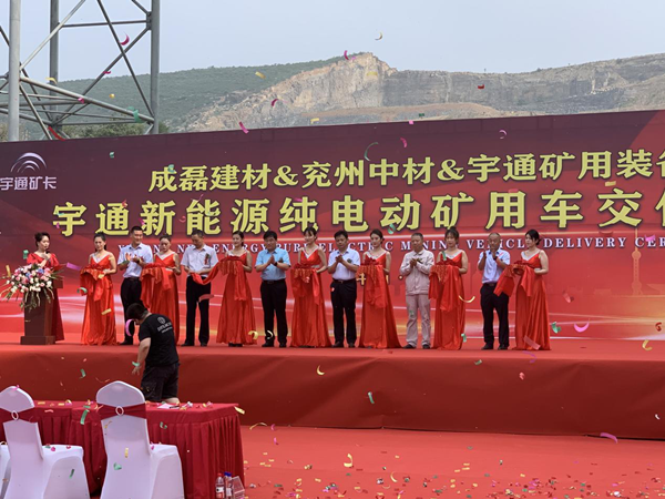 2021年7月17日,成磊建材&兗州中材&宇通礦卡三家企業(yè)代表在成磊建材礦區(qū)舉行隆重的交接儀式,標志著兗州中材建設有限公司礦山開采在踐行“綠水青山就是金山銀山”的發(fā)展理念中邁出堅實一步。 出席本次交接儀式的有:禹州市成磊建材有限公司張景奇總經理及宋朝陽常務副總經理,兗州中材建設有限公司顏景祥副總經理及兗州中材河南省內各項目尚曉峰、宋道明、沈磊、劉國榮及陳茂興經理,宇通礦用裝備銷售公司馬勇總經理及宇通華北分公司劉寶柱總經理,以及禹州市成磊建材有限公司、兗州中材建設有限公司職工代表。 儀式現場彩旗飄飄,人聲鼎沸,場面氣氛熱烈而隆重。首先,宇通礦用裝備銷售公司總經理馬勇先生致詞,馬總介紹了宇通客車響應國家政策在新能源礦車領域擁有的先進技術和取得的市場成就,以及對兗州中材建設有限公司、禹州市成磊建材有限公司美好明天的祝福。隨后,兗州中材建設有限公司副總經理顏景祥先生上臺致詞,顏總強調,兗州中材建設有限公司作為中央企業(yè)是更具有社會責任感的企業(yè),兗州中材在謀求發(fā)展的同時積極貫徹國家政策,在礦山施工中率先使用新能源設備,為構建“資源節(jié)約型、環(huán)境友好型”社會做出應有的貢獻,承擔央企責任,擔負央企職責。最后,禹州市成磊建材有限公司總經理張景奇先生致詞,張總肯定了兗州中材建設有限公司在礦山施工中采用更加安全環(huán)保新型設備的工作,期望兗州中材建設有限公司依靠過硬的施工技藝、新型的生產設備、高效的管理模式將禹州市成磊建材有限公司礦山在全省乃至全國范圍內樹立標桿,打造成示范性礦山。 致詞完畢,儀式進入剪彩環(huán)節(jié),由禹州市成磊建材有限公司張景奇總經理、宋朝陽常務副總經理,兗州中材建設有限公司顏景祥副總經理、禹州第四分公司尚曉峰經理,宇通礦用裝備銷售公司馬勇總經理、宇通華北分公司劉寶柱總經理共同上臺剪彩,隨后,由劉寶柱先生代表宇通公司向兗州中材建設有限公司顏景祥副總經理交付金鑰匙,并對前來參加儀式的一對舞獅進行點睛,寓意“點石(獅)成金”。 伴隨著臺上舞獅的激情表演以及空中飄舞的禮花,成磊建材&兗州中材&宇通礦卡交接儀式圓滿結束。