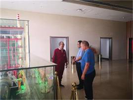 在礦山臨建生活區檢查過程中,郭總與業主山西國金電力有限公司董事長、總經理頡進行友好的暢談,隨后郭總董事長邀請來到山西國金電力有限公司總部大樓,興致勃勃的參觀了正在使用世界首350MW超臨界循環發電機組模型