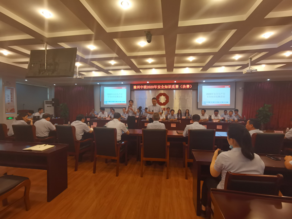 為進一步鞏固“安全生產(chǎn)月”成果,加強安全文化建設和安全生產(chǎn)宣傳教育,提高全員安全意識,營造良好的安全生產(chǎn)氛圍,提升安全素養(yǎng),6月24日上午9時30分,滁州中聯(lián)在安全知識競賽初賽的基礎上舉辦了2020年安全知識競賽決賽。滁州分公司代表的礦山部以初賽第一名的成績?nèi)雵敬螞Q賽。 比賽共有三輪,分為必答題、搶答題和看圖題,每隊的基礎分為100分,現(xiàn)場采用搶答器搶答。在比賽過程中,七支隊伍比分此消彼長,互不相讓,尤其在搶答環(huán)節(jié)競爭更為激烈,一度將競賽氣氛推向高潮。經(jīng)過一個半小時的角逐,各隊比分逐漸拉開差距,最終,滁州分公司代表的礦山部獲得第二名的好成績,滁州中聯(lián)行政人事部和物資供應部分別獲得第一名、第三名的好成績。