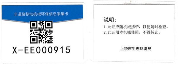 領取環保標識牌及其卡片后,分公司將申領的非道路移動機械環保標牌張貼于機械設備的左右兩側或機械尾端、操作手臂等明顯位置。