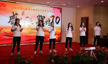 為慶祝新中國成立70周年 ,9月29日下午,由兗州中材和山東地質總隊聯合舉辦的“盛世華誕 輝煌70”國慶文藝匯演隆重舉行。 一首首優美的歌聲、一段段好看的舞蹈表達了對祖國母親生日的祝福。一首《國家》,把祖國這70年來的情懷用歌曲的形式表達,祝愿我們祖國的明天會越來越好,家是國,國更是家。一首《映山紅》,那優美的旋律、深情的歌詞表達了對紅軍的熱愛和對英雄的崇敬之情。一首《今天是你的生日》表達了對祖國母親深深的熱愛和祝福。本次匯演形式多種多樣,精彩紛呈。包括舞蹈、合唱、獨唱、相聲小品、樂器獨奏等。          通過本次文藝匯演增進了兗州中材和山東地質總隊的友誼,展現了“不忘初心、牢記使命”主題教育的新成果,增強國慶的節日氛圍,更加增強全體職工的愛國之心。 |