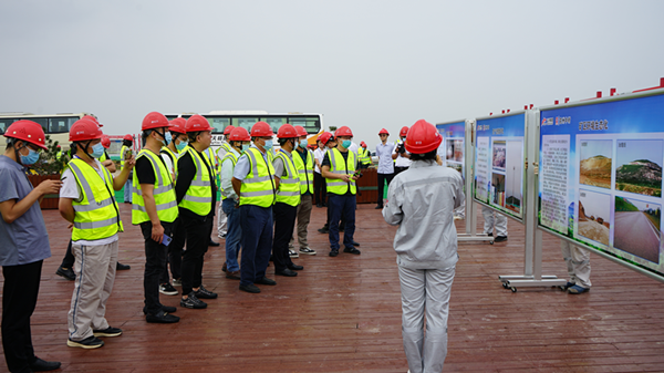 2021年9月18日,由中國(guó)水泥協(xié)會(huì)主辦,中材礦山建設(shè)有限公司、山水集團(tuán)協(xié)辦的第十五屆水泥礦山年會(huì)暨中國(guó)水泥協(xié)會(huì)礦山專(zhuān)業(yè)委員會(huì)第五次代表大會(huì)參會(huì)代表蒞臨兗州中材有限公司平陰分公司青龍山礦區(qū)參觀(guān)。中材礦山胡總、兗州中材劉總、平陰山水總經(jīng)理丁宗新、黨委書(shū)記侯福存及相關(guān)領(lǐng)導(dǎo)接待了與會(huì)代表。  參觀(guān)團(tuán)先后參觀(guān)了平陰山水公司智能化控制室、數(shù)字化礦山控制室,并到礦山現(xiàn)場(chǎng)進(jìn)行實(shí)地參觀(guān)。  我方代表結(jié)合現(xiàn)場(chǎng)對(duì)我公司的‘六個(gè)標(biāo)準(zhǔn)化’進(jìn)行了細(xì)致的講解,參觀(guān)團(tuán)詳細(xì)了解并觀(guān)看了各平臺(tái)的開(kāi)采情況、路王漿道路運(yùn)行情況、噴淋抑塵系統(tǒng)的抑塵效果、預(yù)裂邊坡爆破后效果以及GPS智能卡車(chē)調(diào)度系統(tǒng)。  通過(guò)實(shí)地參觀(guān)和交流,參會(huì)代表對(duì)平陰公司數(shù)字化礦山+綠色礦山有了更直觀(guān)的了解,對(duì)數(shù)字化礦山開(kāi)采的先進(jìn)性、可靠性以及對(duì)綠色礦山的建設(shè)給予了肯定。