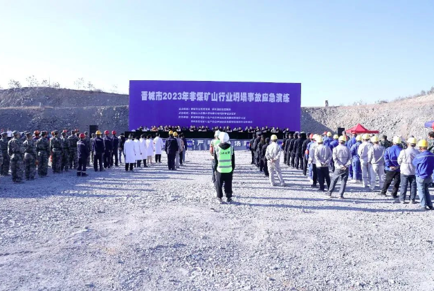 | 為進(jìn)一步提升非煤礦山企業(yè)安全意識(shí)和應(yīng)對突發(fā)事故的處置能力,晉城市 2023 年非煤礦山行業(yè)坍塌事故應(yīng)急演練在晉城山水合聚水泥有限公司司家掌石灰?guī)r礦(澤州分公司承建礦山)舉行。晉城市應(yīng)急管理局、縣應(yīng)急管理局、縣委宣傳部、縣衛(wèi)健局、縣公安局、縣氣象局、縣消防救援大隊(duì)、縣自然資源局、晉城市救援救護(hù)隊(duì)、晉城市能源技術(shù)中心等 12 家單位120余人參與演練。市應(yīng)急管理局三級(jí)調(diào)研員柳青、市應(yīng)急管理局救援協(xié)調(diào)科邰建民、各縣區(qū)應(yīng)急管理局負(fù)責(zé)人、分管負(fù)責(zé)人、非煤礦山行業(yè)相關(guān)科室負(fù)責(zé)人及全市所有非煤礦山企業(yè)主要負(fù)責(zé)人等 130 多人現(xiàn)場觀摩了演練。