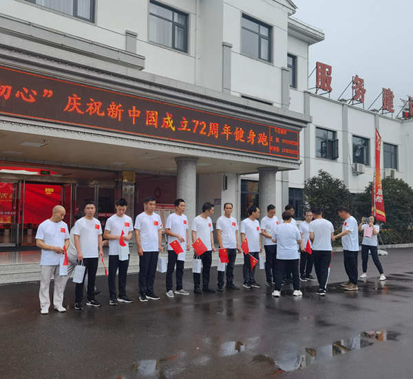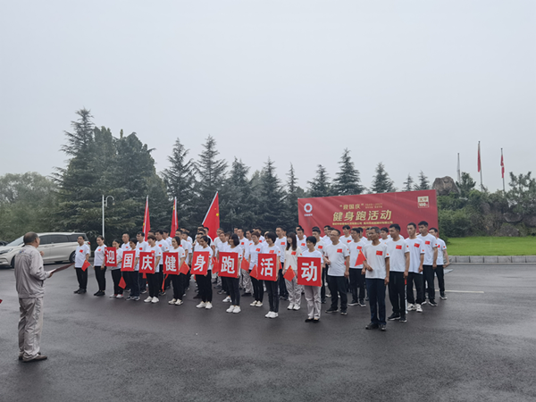 金秋九月,秋雨綿綿。9月27日下午,為增強(qiáng)職工健康文明、積極向上的生活方式,以良好的精神面貌迎接新中國(guó)成立72周年,白坪分公司與業(yè)主單位登封中聯(lián)水泥有限公司組織開(kāi)展了“迎國(guó)慶”健身跑活動(dòng)。  活動(dòng)開(kāi)幕式前,來(lái)自各部門50多名職工身著統(tǒng)一服裝,精神飽滿的在辦公樓前列隊(duì),登封中聯(lián)水泥有限公司劉總為本次“迎國(guó)慶”健身跑活動(dòng)致辭,秉承快樂(lè)工作,健康生活的宗旨,雨天在保證安全的前提下,跑出快樂(lè),跑出活力。  全體職工傾情演唱《歌唱祖國(guó)》,鮮艷的五星紅旗伴隨著嘹亮的歌聲在秋風(fēng)中飄揚(yáng)。出發(fā)前大家在活動(dòng)版面共同簽字助力,并為祖國(guó)母親送上生日祝福。  一聲令下跑步正式開(kāi)始,一個(gè)個(gè)似箭如梭的身影形成一道亮麗的風(fēng)景線。比賽現(xiàn)場(chǎng)風(fēng)雨無(wú)阻,激情四射。  活動(dòng)結(jié)束,由公司代表為在此次健身跑活動(dòng)中取得優(yōu)異成績(jī)的員工頒發(fā)紀(jì)念獎(jiǎng)品,激勵(lì)大家共同努力,鍛煉身體,以健康良好的精神面貌為祖國(guó)貢獻(xiàn)力量。  “迎國(guó)慶”健身跑活動(dòng),增強(qiáng)了體質(zhì),跑出了健康,調(diào)動(dòng)了職工運(yùn)動(dòng)的熱情和積極性。放飛自我,展望未來(lái);以更加飽滿的工作熱情和昂揚(yáng)向上的精神風(fēng)貌投入到今后的征程中,以優(yōu)異的成績(jī)向新中國(guó)成立72周年華誕獻(xiàn)禮。