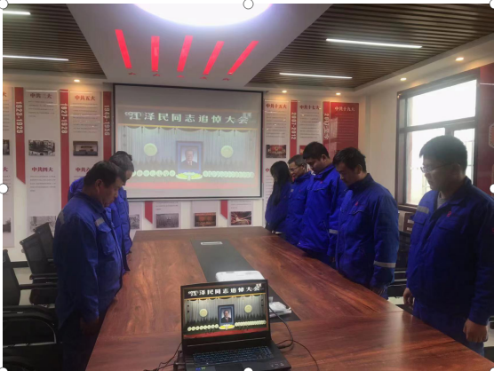 上午10時,在低回的哀樂聲中,白坪分公司全體員工集體默哀,表達對江澤民同志的崇高敬意和深切緬懷。