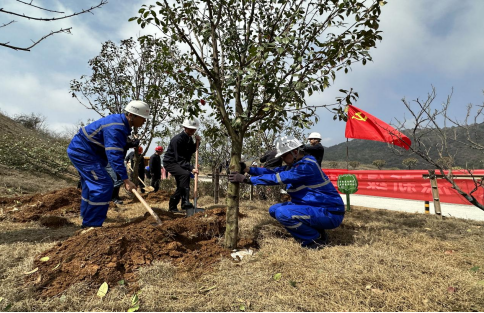 學習結束,參會人員到礦山現場開展“黨旗紅、添新綠”主題黨日植樹活動,以實際行動踐行綠色發展理念。